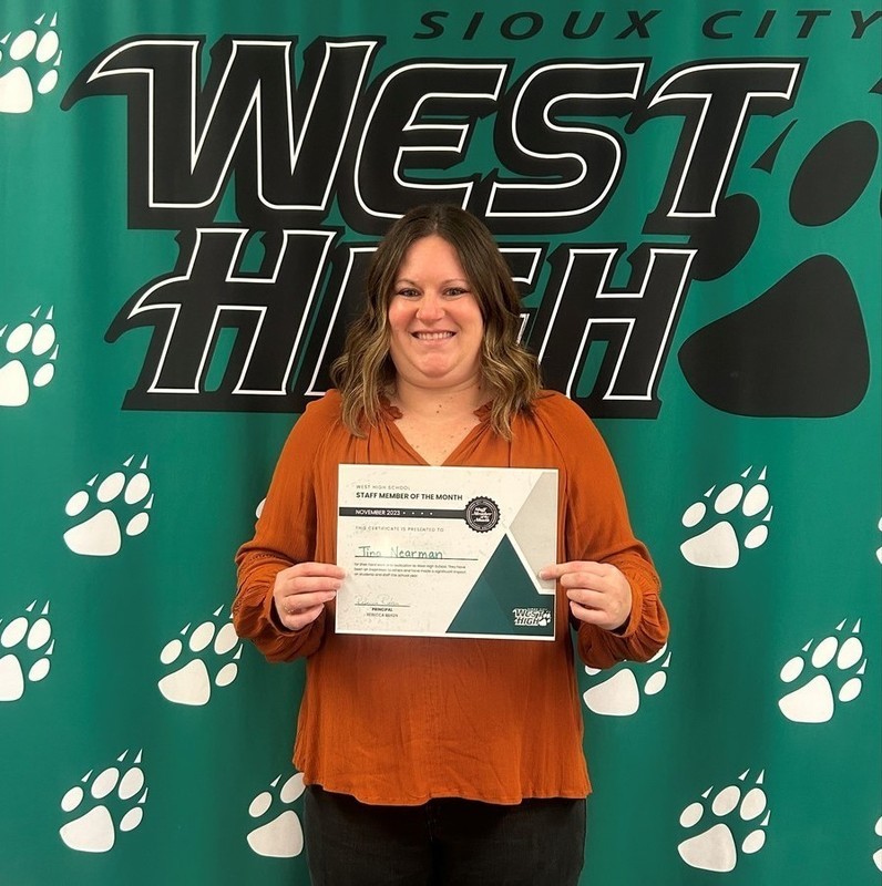 "Ms. Tina Nearman joined West High this year as our new Bookkeeper. She is always willing to lend a helping hand, even saving the day by volunteering as a last minute chaperone! Tina demonstrates the "WEST" values (Welcoming, Engaged, Safe, & Trustworthy) on a daily basis!