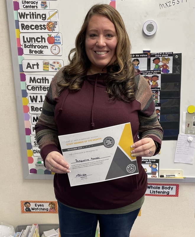 "Ms. Kennedy always goes the extra mile not only for her students, but for all students at Hunt. She is on several committees at Hunt to ensure all students are receiving a quality education. She does a great job taking on leadership roles and is always willing to help others learn and grow. She is so positive and works well with everyone. Hunt A+ Arts Elementary School is extremely lucky to have her on staff!"